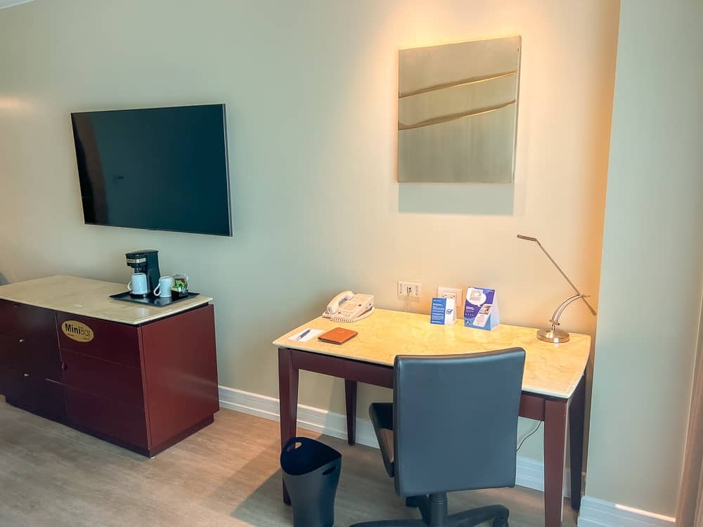 My room was on the eighth floor, the same floor as the Club Lounge. At first glance, it’s a very basic hotel room, with decor that’s a little dated.