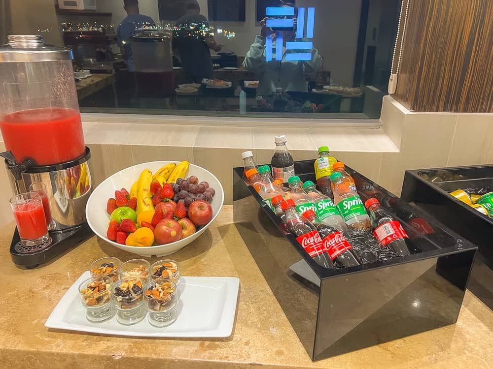 When I checked in, I was informed that I could have breakfast free of charge thanks to Platinum status, and that this was not limited to breakfast served in the lounge. I was also informed that the lounge would be offering food from 5 pm to 9 pm.