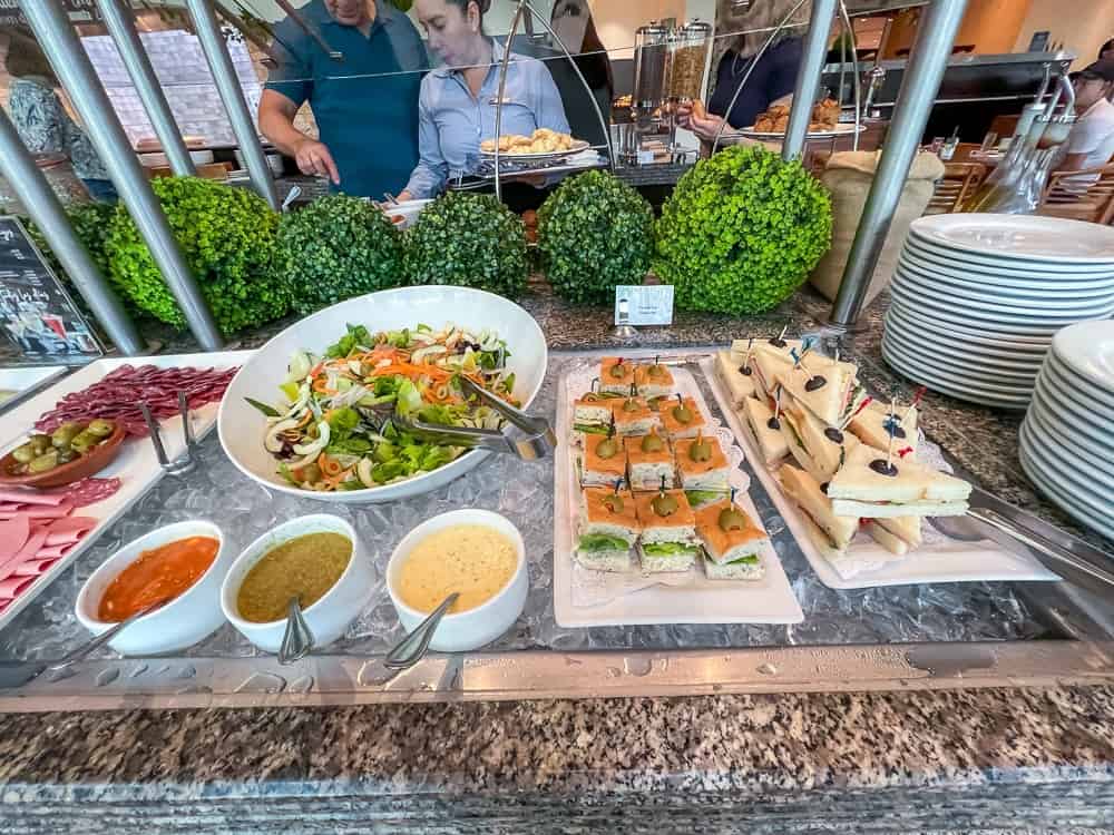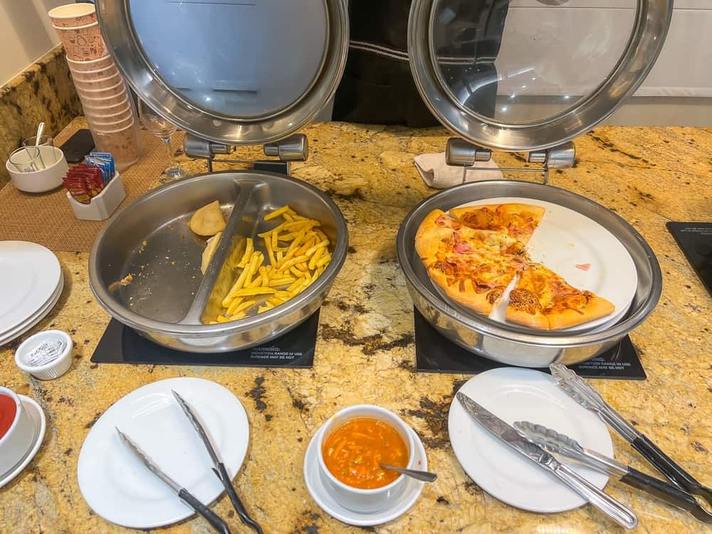 Despite this, I have to say that the evening service was generous: salad, sandwiches, hot buffet with empanadas, kebabs and pizza. A selection of desserts as well as soft drinks, beer, red and white wine were available.