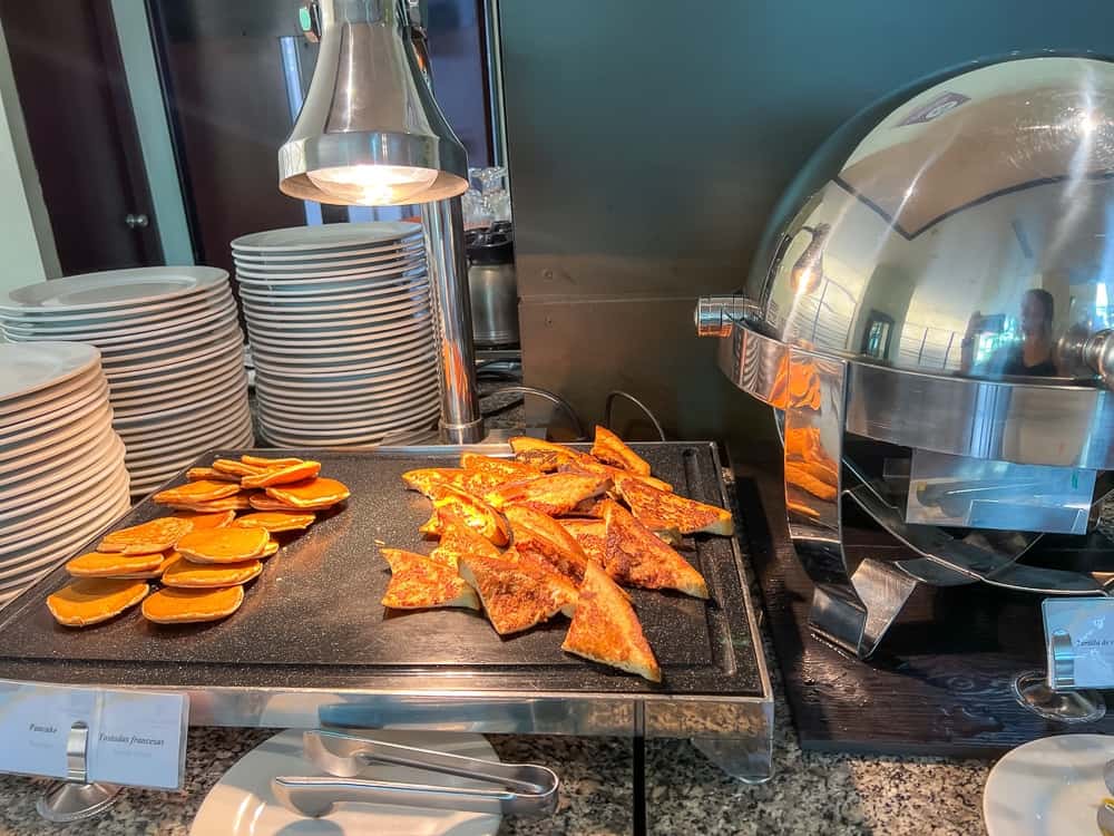 The food was varied, with many local options such as sautéed pork, typical soup, and of course the international options: fresh juices, cold meats and cheeses, waffles, pancakes and also salads and sandwiches. You could order an omelette to your liking, and filter coffee was served at the table.
