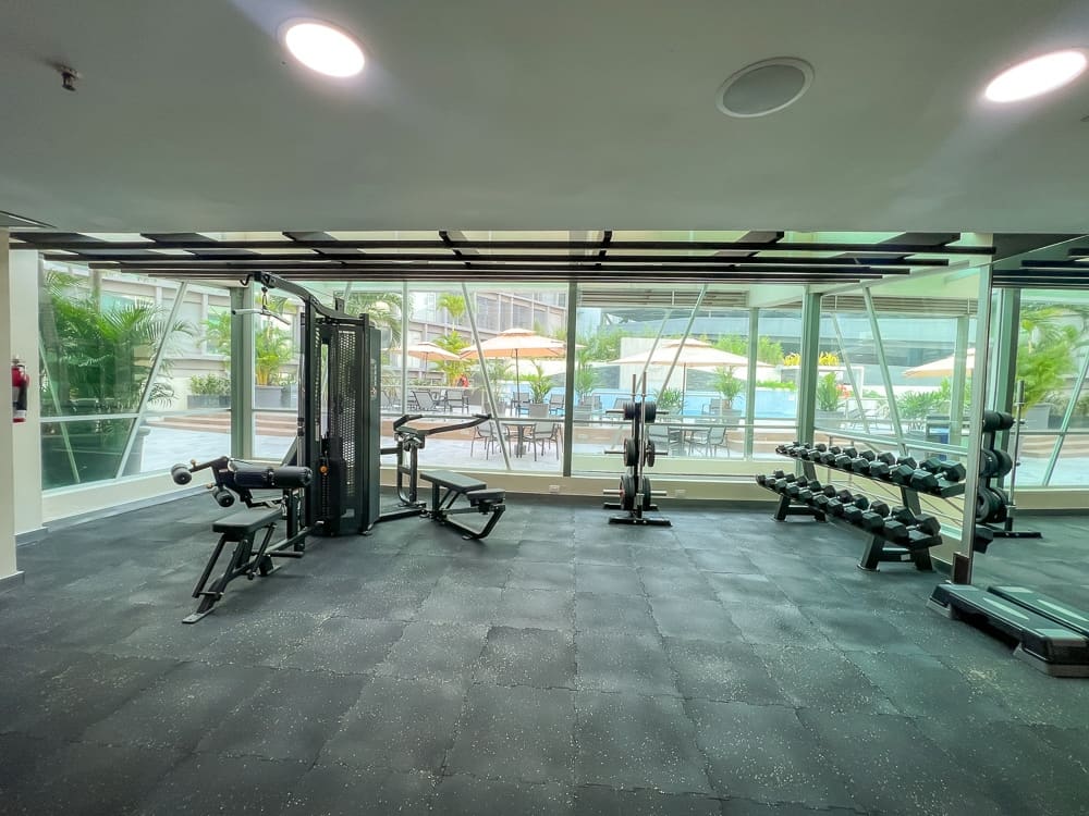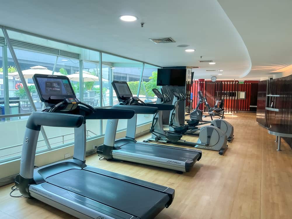 On the same floor as the pool is a training room open from 6.30 a.m. to 11 p.m. Quite spacious, it contains all the machines and equipment needed to keep in shape. The glass wall also makes it a pleasant place to train.
