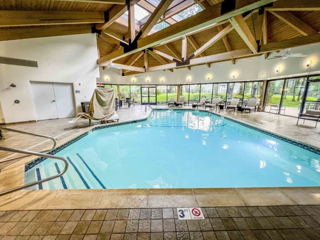 The indoor pool is a welcoming choice for guests to unwind when it’s pouring outside or simply to amuse our little one before bedtime. A lovely patio also gives outdoor activities a sense of leisure.