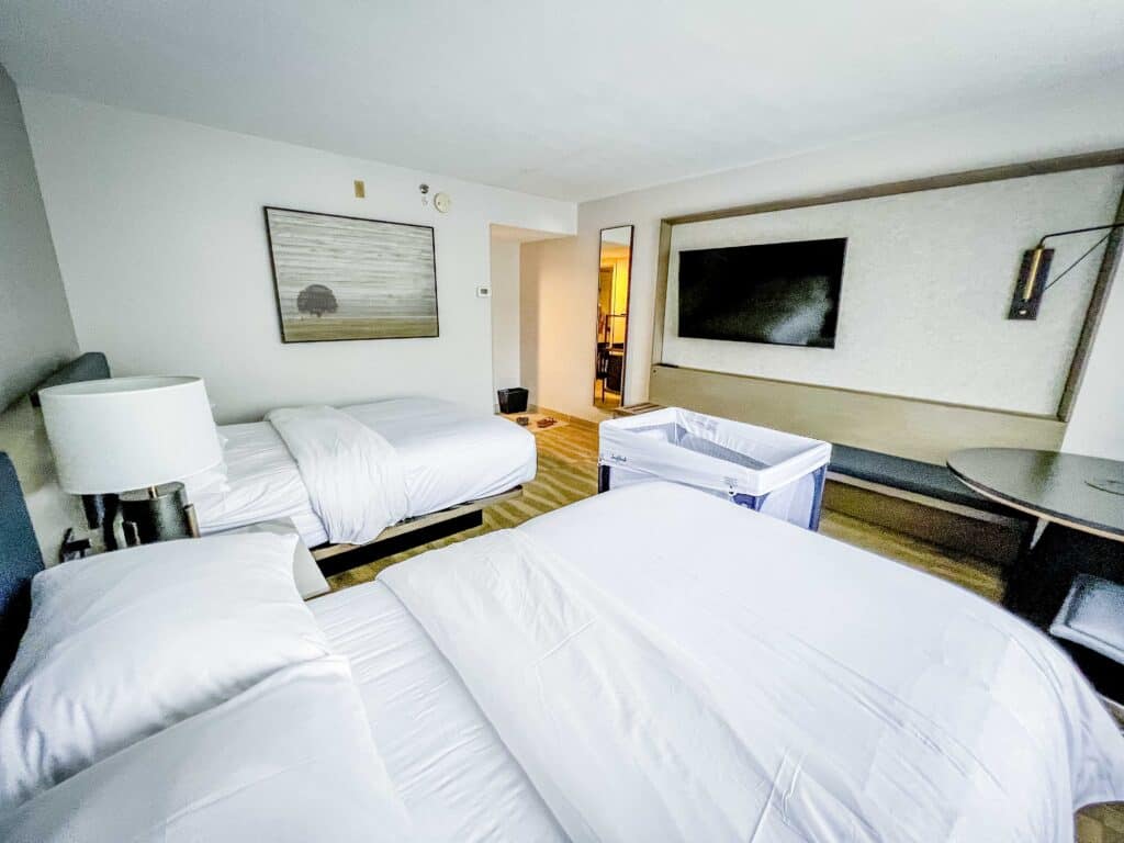 Our selection was a standard Guest room, 2 Doubles for our family of three at the Sheraton Portland at Sable Oaks. The room’s cleanliness and adequate size met our needs, and the room was also able to accommodate a pack-and-play park for our toddler. The decor, while not ultramodern, presented a cozy and inviting ambiance.