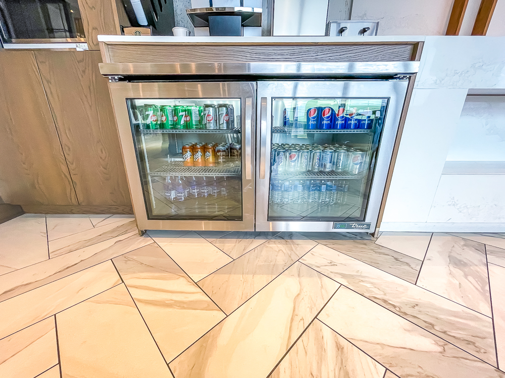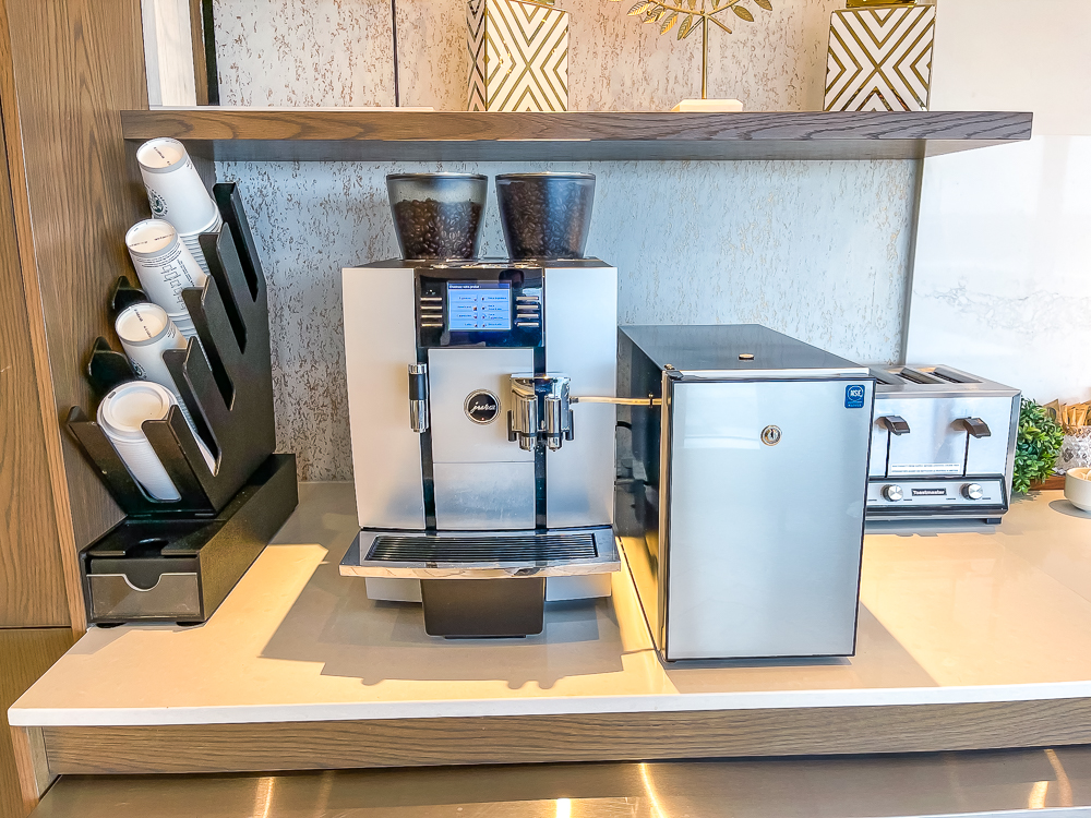 In the lounge there was also a wine fridge (empty), a Jura coffee machine and a fridge with some sodas and water. Since we were a bit hungry, we were again disappointed to be put on a diet as there was no food.