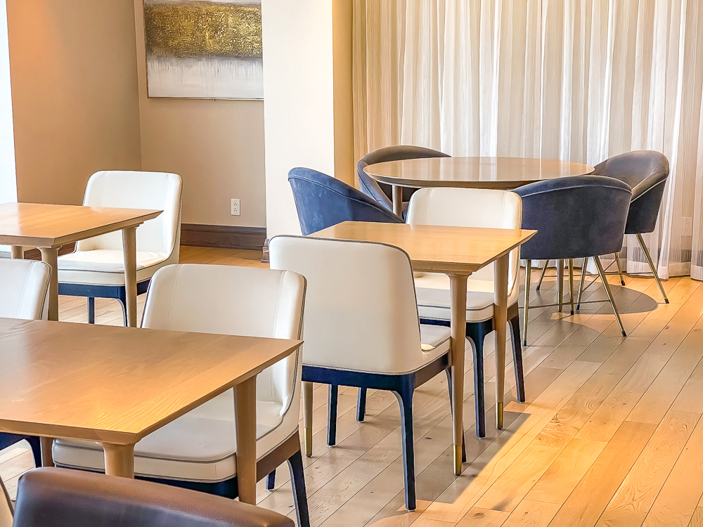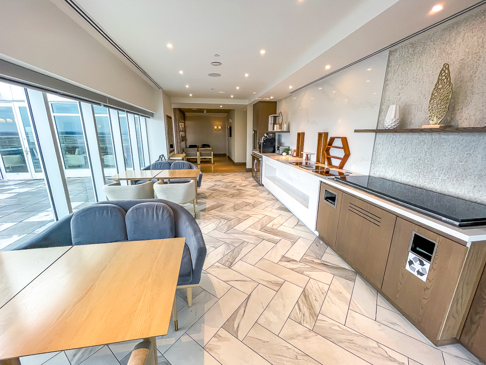 It was time to go and freshen up, so we went to the 17th floor and the lounge. We found a large space with an iMac, tables and a lounge area.