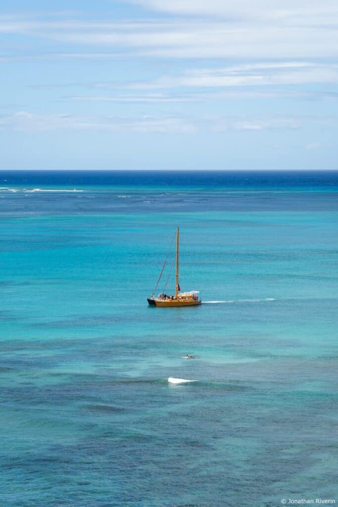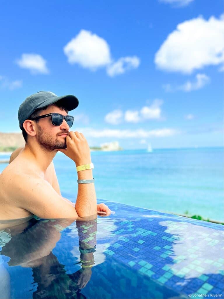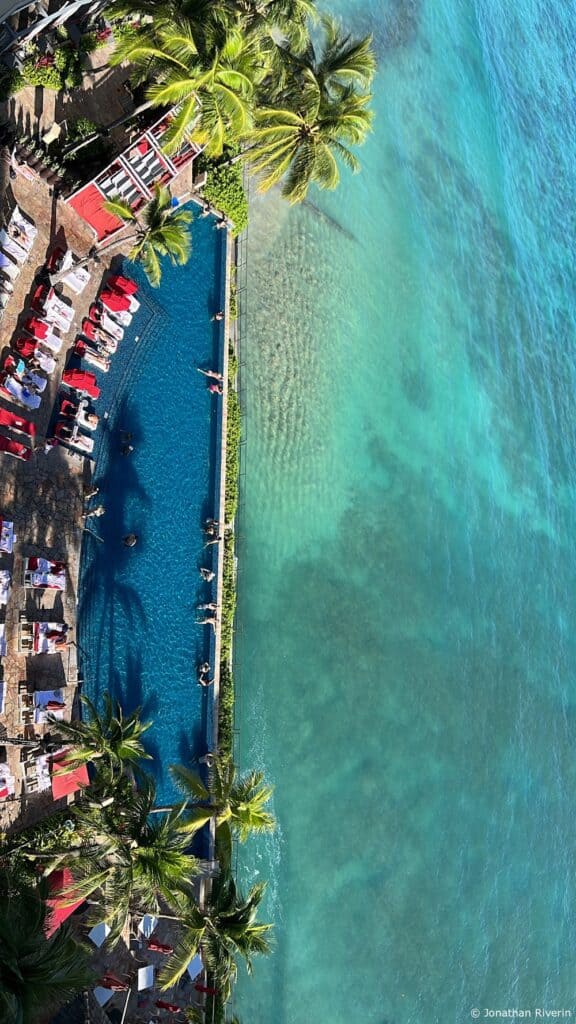 However, the “wow” moment of this experience lies in the balcony, which reveals a breathtaking view of the ocean and pool below. The interior decor, while charming, becomes secondary to the splendor that unfolds before our eyes. My balcony was transformed into a private observation tower, where almost every moment was an opportunity to admire the marine wildlife (sharks, rays, turtles) and surfers. What’s more, this room offered me the opportunity to spend time gazing at Diamond Head, an icon of the island of Oahu, from morning until the magnificent sunset.