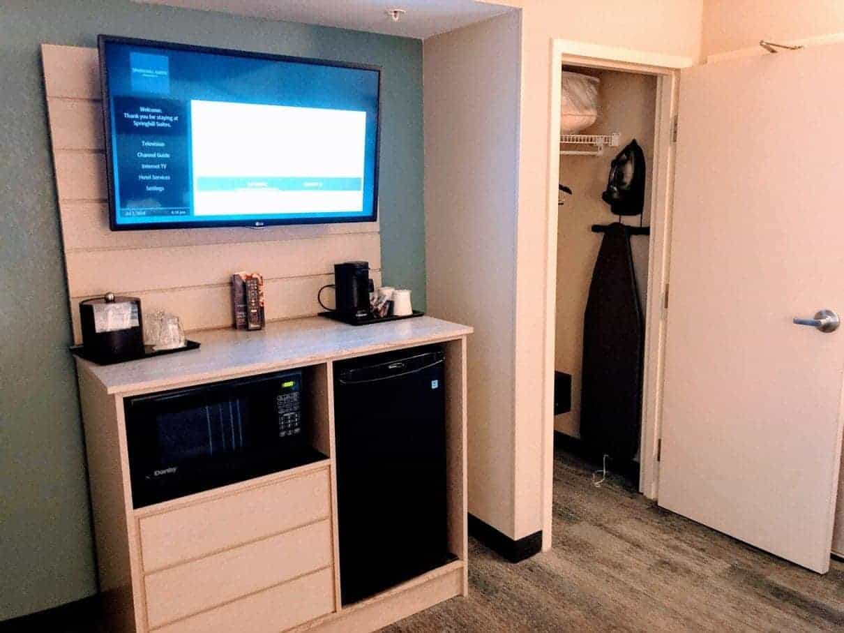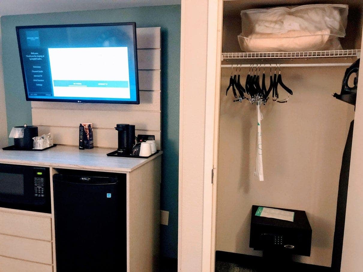 The room is standard SpringHill Suites: we chose a king bed and a sofa bed (our children being too small for a queen bed). The mattress of the sofa bed will be placed on the ground.