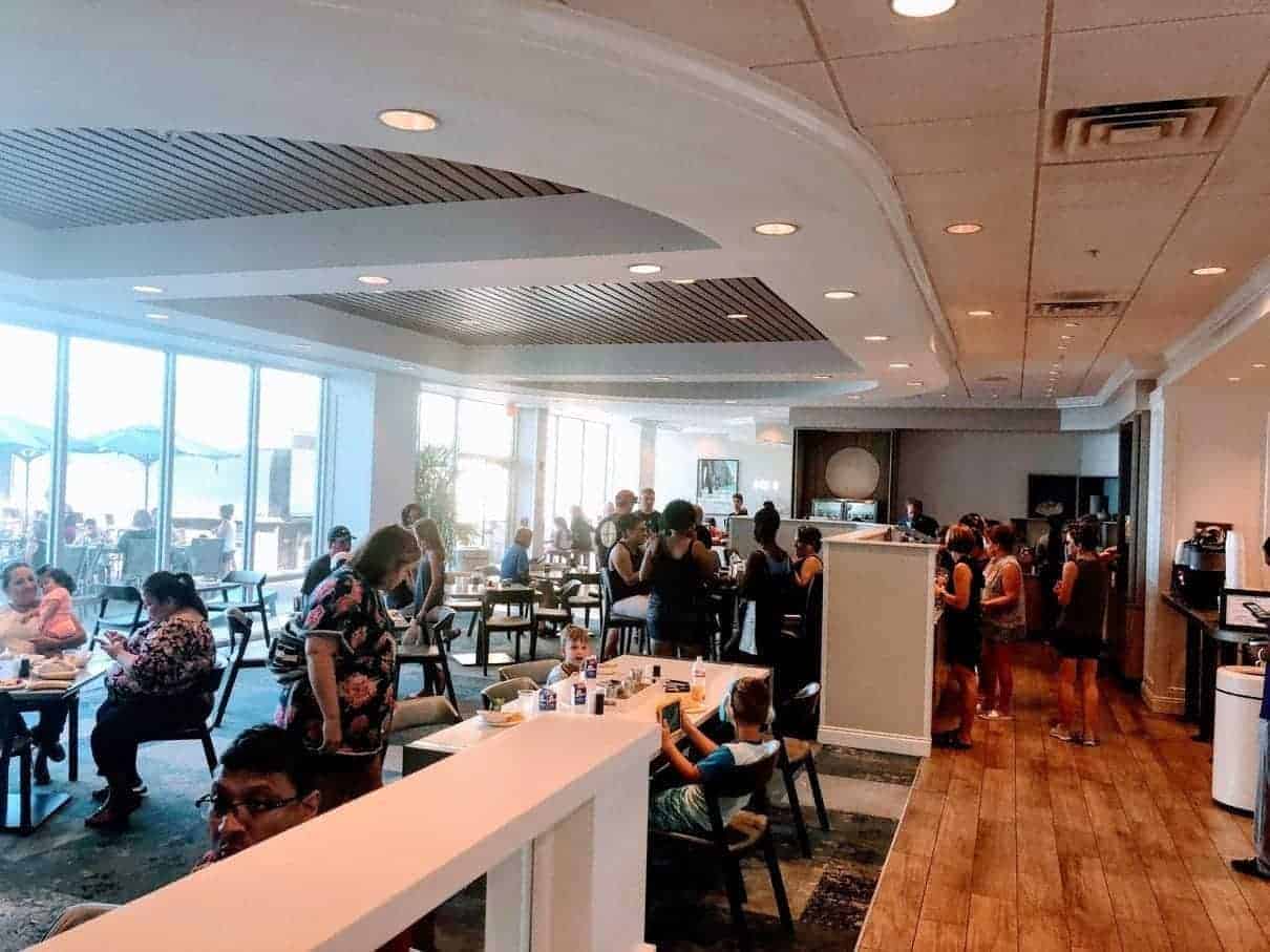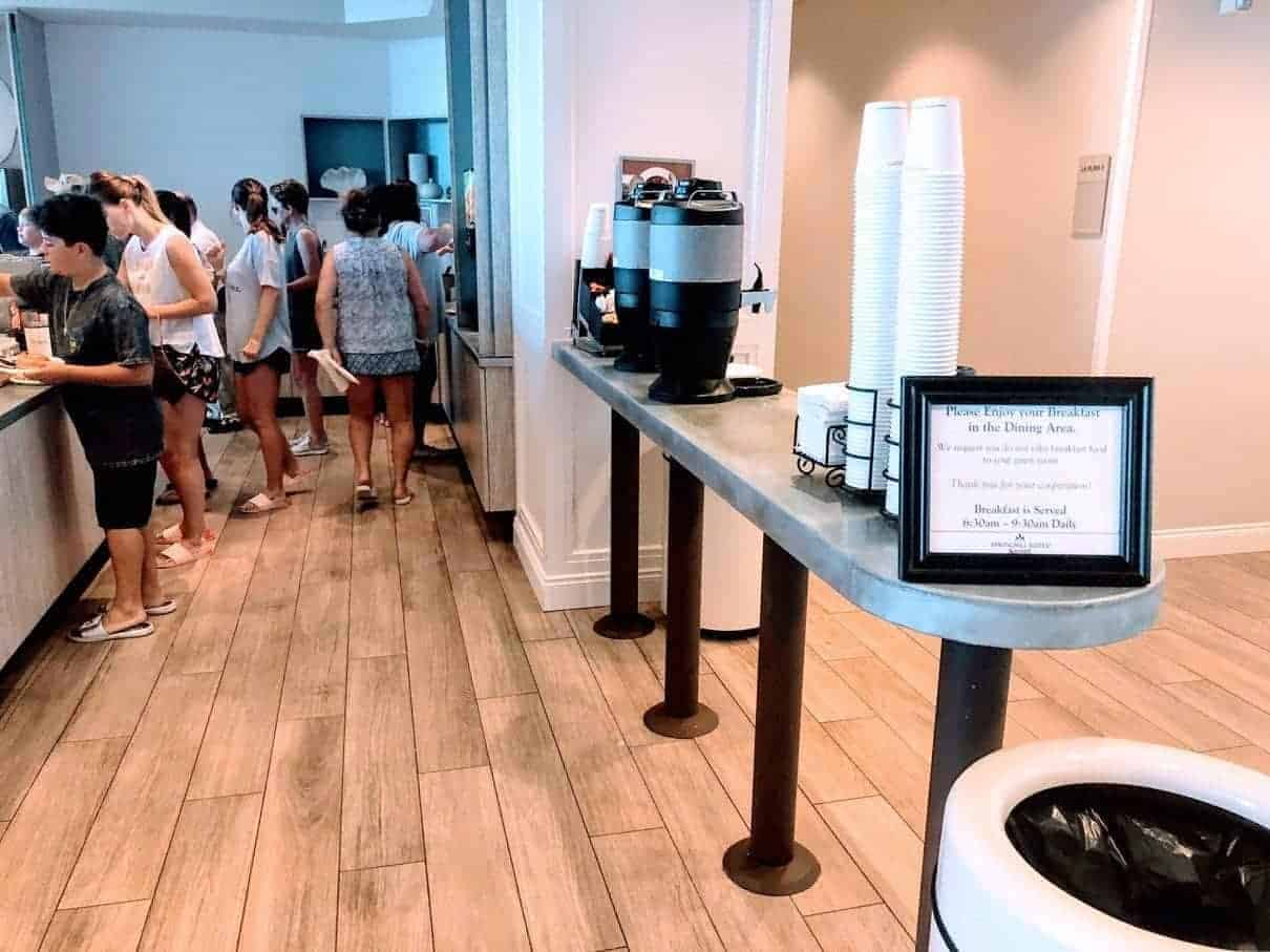 At this SpringHill Suites, breakfast is included for all. And there are many, many people.