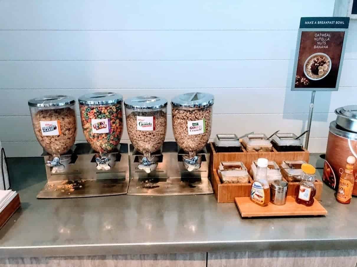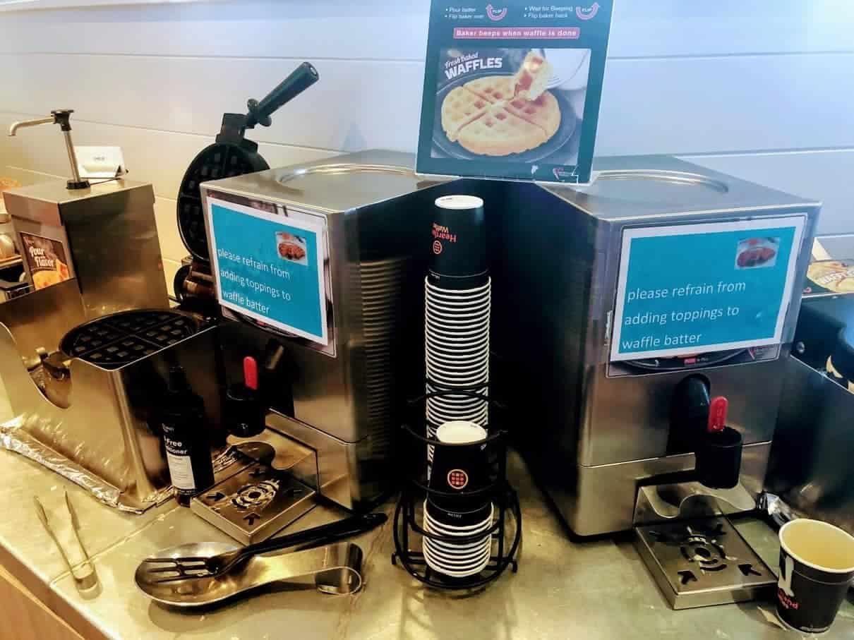 The breakfast buffet is very “American”: scrambled eggs, sausages, bacon, waffles, pancakes, cereals, coffee…