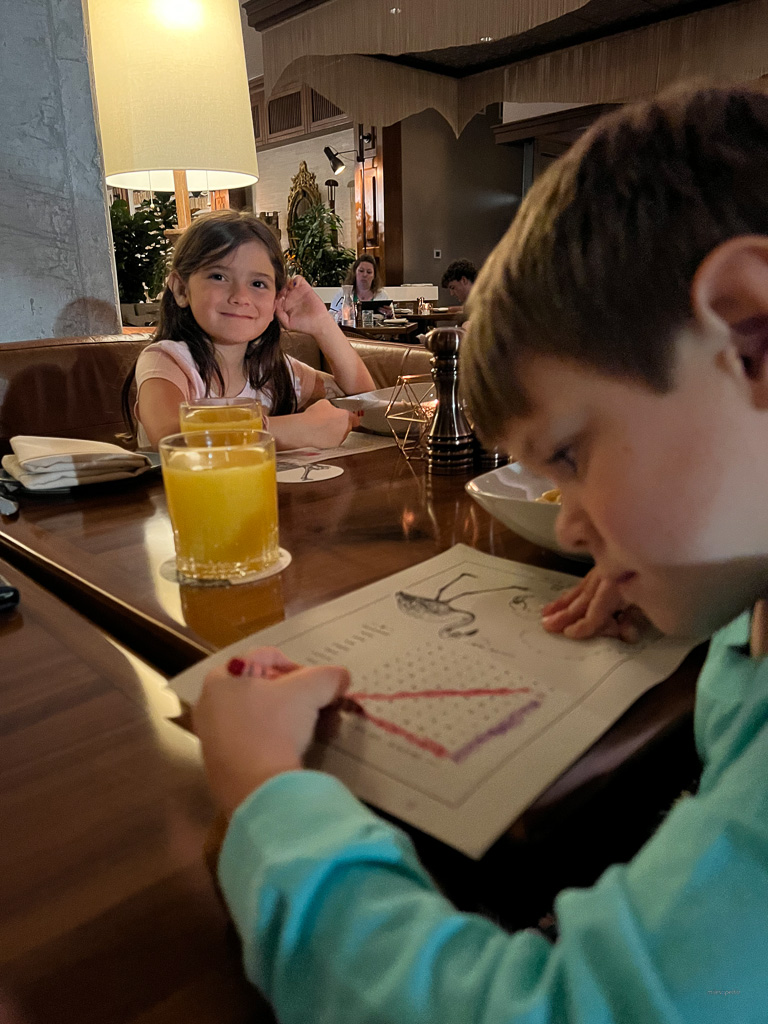 We enjoyed a delicious meal and cocktails and appreciated the drawings offered to our children.