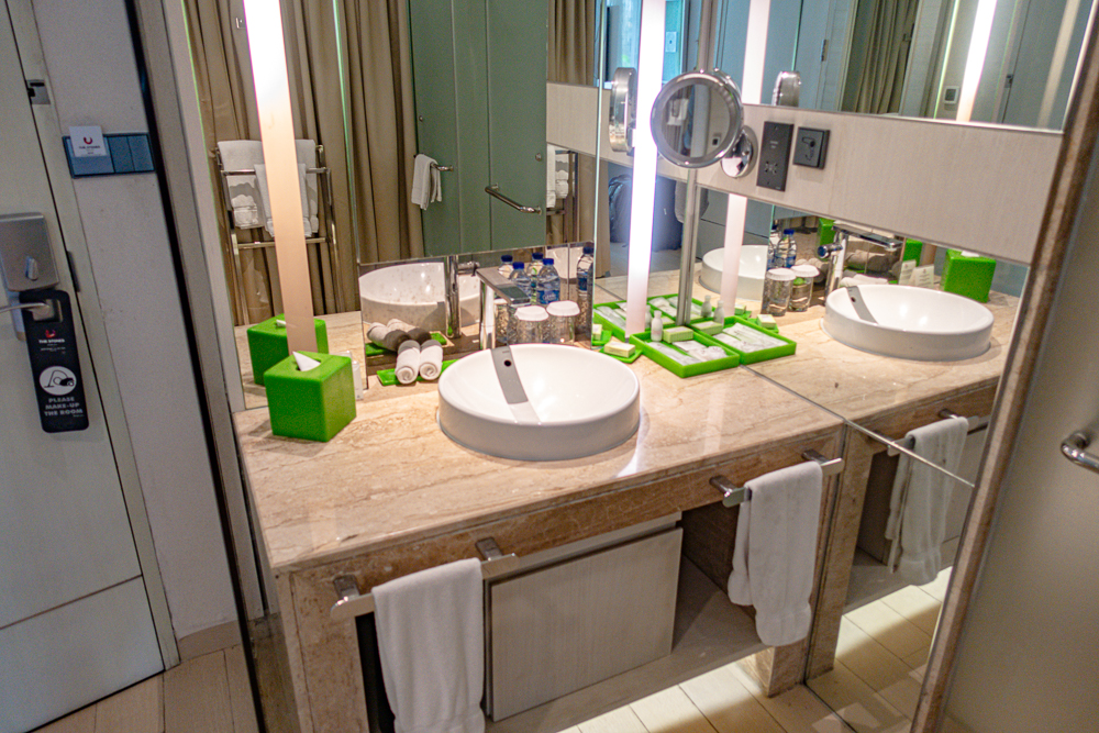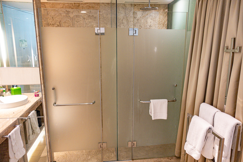 Thanks to our Titanium status, we were upgraded to a Premium room, allowing us to have a small outdoor pool all to ourselves. The rooms are located in the L-shaped parts of the hotel. The decoration is neat, but the whole was sometimes lacking in brightness. We must pass in front of the pool to reach our room.