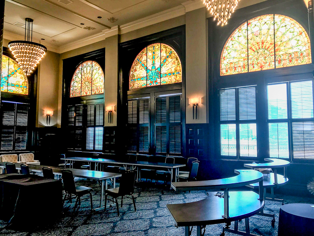 Partly thanks to its sumptuous lobby (that’s an understatement), the establishment joined the category of Collection hotels of the Marriott chain. A hall that can be rented for receptions as well as its two adjoining rooms with superb stained glass windows. A veranda can also accommodate 250 guests.