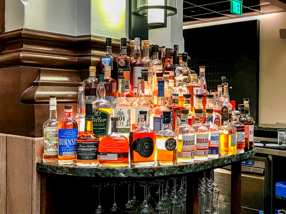 Set back in the lobby, the ERGO bar-restaurant used to be a ticket office. It now displays their whisky collection prominently.