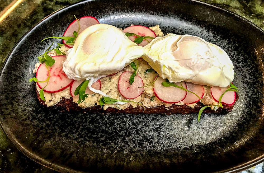 That’s where you can also have breakfast and dinner. We have opted for sharing dishes in the evening. And for breakfast, toast with mushroom tapenade, parmesan and chives in sour cream. And don’t forget the slices of radish for decoration and the runny eggs on top. It was DELICIOUS. The ERGO menu? It is here.