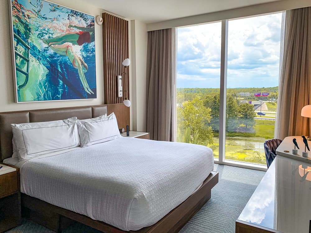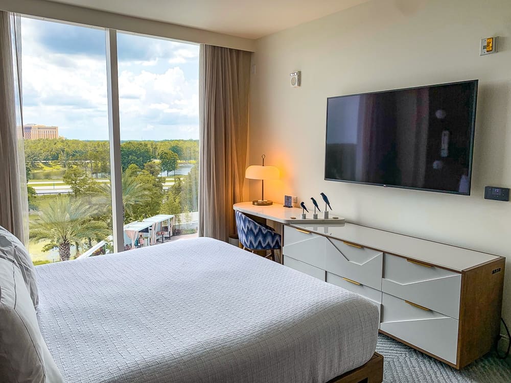 A standard room at the Walt Disney World Swan Reserve Hotel costs between 220 and 400 USD per night, depending on the time of year or events. Otherwise, it’s accessible via points, at a cost ranging from 55,000 to 84,000 Marriott Bonvoy points per night.
