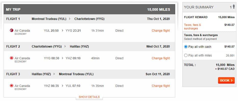 Multi-city trip in the Maritimes for 7,500 miles Aeroplan