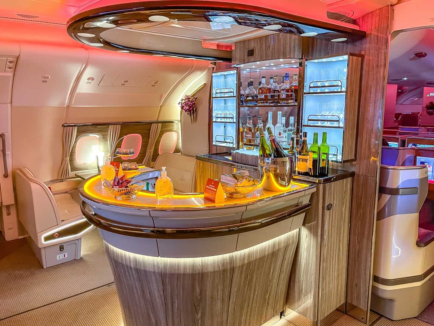While the flight on the B777 no doubt will be great, I’m mostly looking forward to the segment on the A380. While the seat and service is similar (check out Audrey’s review here), the A380 features the onboard bar and shower which takes the bling factor to a whole new level!