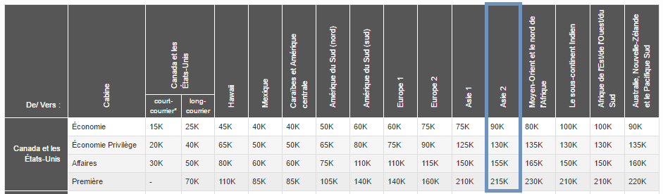 Cette opportunité n’a duré qu’une semaine… Il existe en fait de gros problèmes techniques entre Aéroplan et Air China au niveau de la billetterie, ce qui fait que la disponibilité est sporadique. Mais nous avons saisi cette opportunité.