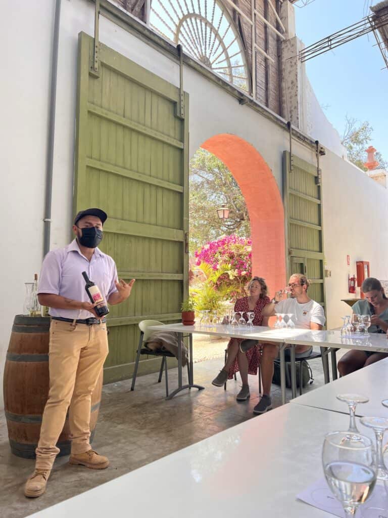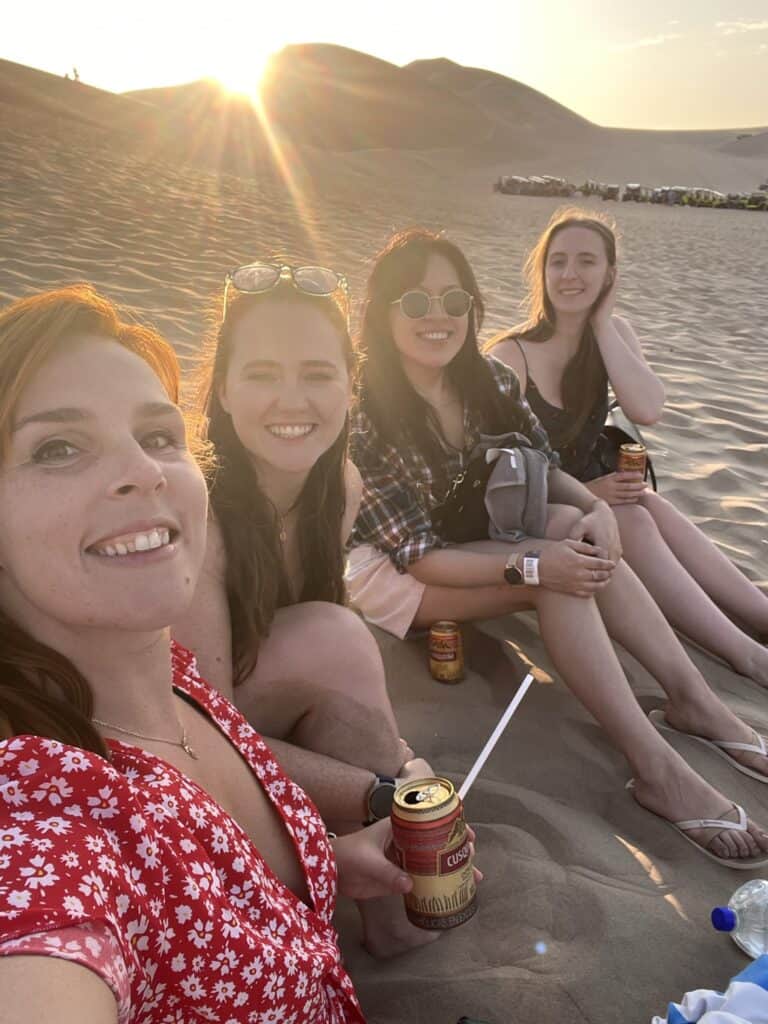Le lendemain, pendant que le reste du groupe visitait les géoglyphes de Nazca, quatre filles et moi avons décidé de visiter le vignoble de Tacama, aux abord de Huacachina. Après un repas décadent et quelques bouteilles de blanc bien frais, nous sommes rentrées regarder le coucher de soleil sur les dunes de sable, au-dessus de l’oasis.