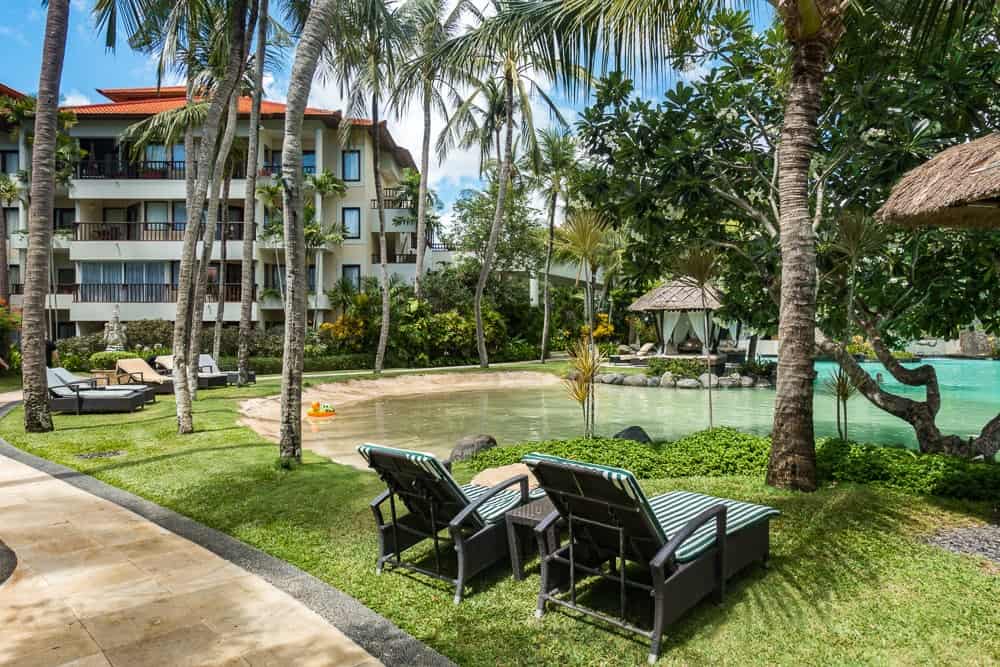 L’hôtel The Laguna était splendide, alternant entre piscines et lagons, arbres aux fleurs tropicales.