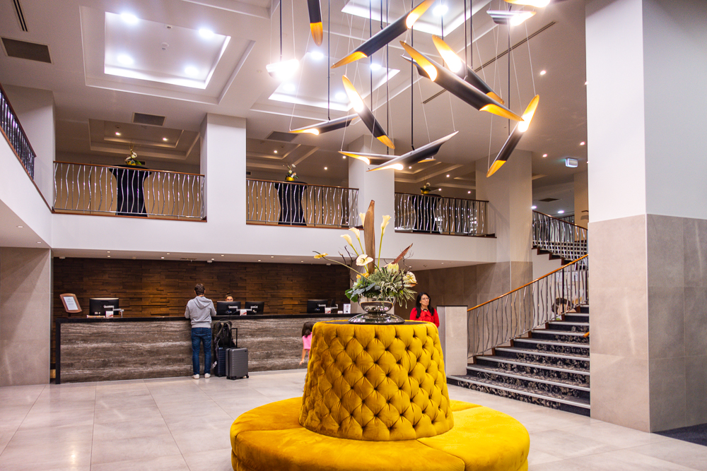 Cet immeuble compte 2 établissements en un: un hôtel et un centre Vacation Club. JM a réservé au Vacation Club pour des chambres plus grandes avec cuisine…mais aucun avantage du statut Marriott Bonvoy ne pouvait s’appliquer (surclassement, petit-déjeuner…).