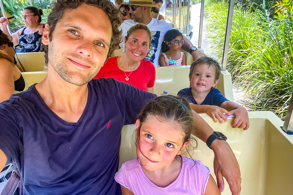 Une fois descendus, Jean-Maximilien et les enfants piqueront une tête et se réfugieront ensuite au Jacuzzi, l’eau étant fraîche. Il est possible de nager avec des poissons dans le lagon, mais le temps se gâtant, nous déciderons de rentrer et profiter du Jacuzzi de notre suite.