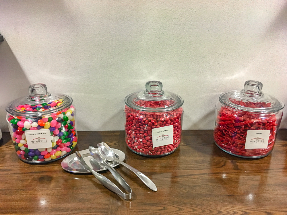 Ce dernier salon est vraiment strict sur les entrées au salon qui peuvent être seulement 4 heures et moins avant le vol. Sinon les deux offraient le wifi et un buffet acceptable. Mention spéciale au Wingtips pour son bar à bonbons!