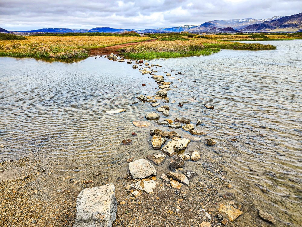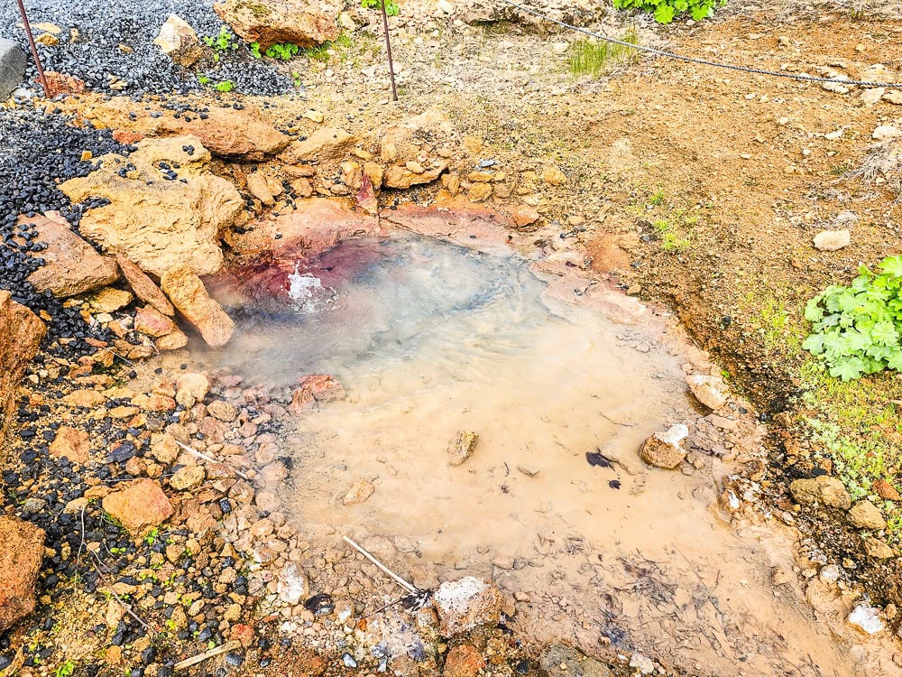 Après avoir conduit à travers un champ de lave, marché environ 10 minutes et traversé un petit ruisseau à gué en sautant d’une pierre à l’autre, on découvre un tout petit bassin dans lequel on peut s’asseoir pour profiter des eaux chaudes. Lors de notre visite, nous étions les seuls, ce qui a rendu l’expérience encore plus magique et paisible.