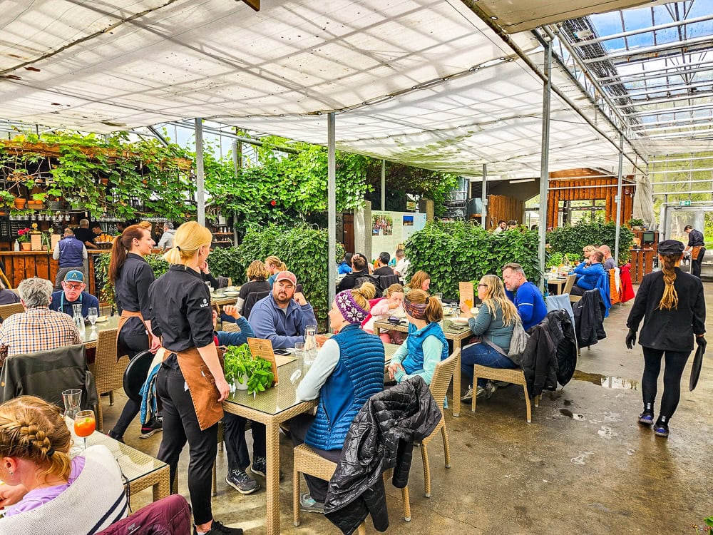 Cet endroit est une serre unique qui permet de découvrir la culture et la production de tomates islandaises dans un cadre naturellement chauffé. On y prend la lunch attablé directement à l’intérieur de la serre.