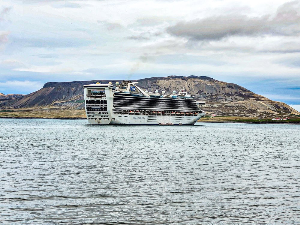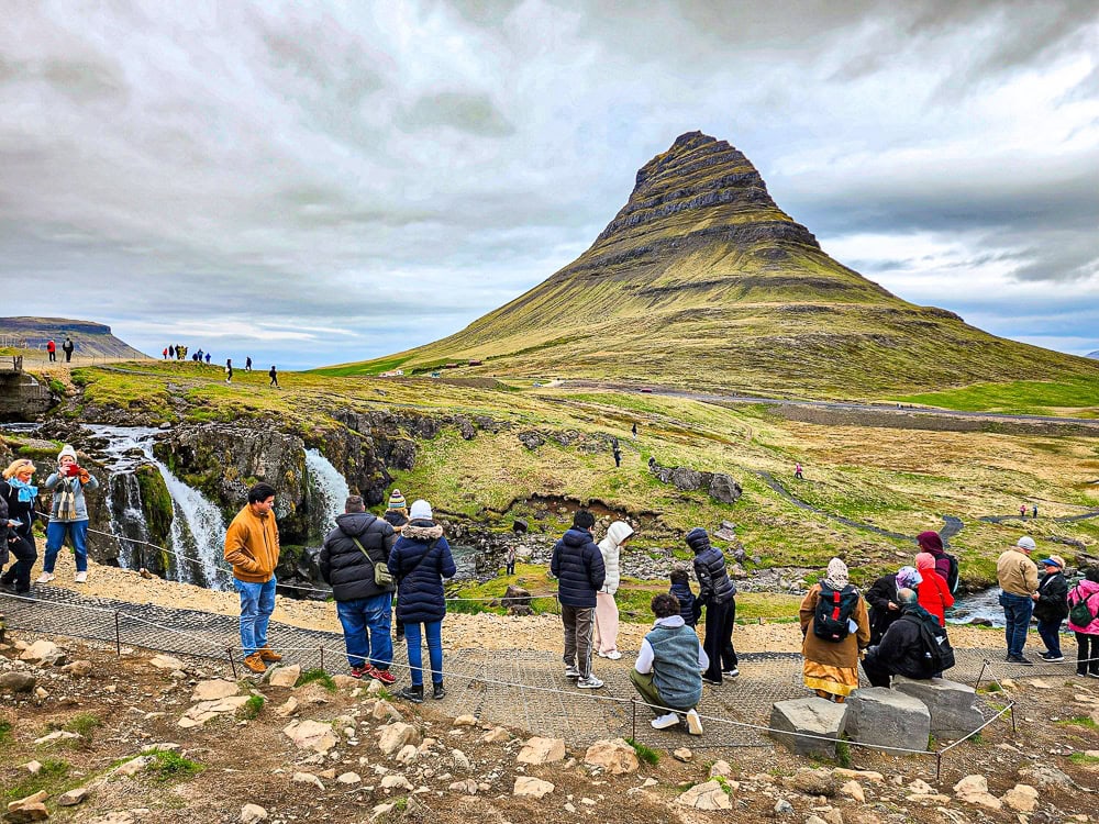 Surprise, un énorme navire de croisière est ancré dans la baie. Le petit village est envahi de touristes en quête de photos des paysages bucoliques, notamment celle de la montagne Kirkjufell. La prise de vue sur Kirkjufell Mountain, symbole emblématique de l’Islande, a également été utilisée dans certaines scènes de la série Game of Thrones.