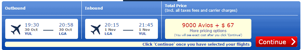 British Airways Executive Club me permet de réserver des billets primes sur les vols d’American Airlines reliant Montréal à New-York (soit La Guardia, soit JFK),