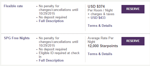 Ma recherche commence avec SPG. C’est un programme que j’avais mis à rude épreuve lors de mon précédent voyage à Vancouver. Il me reste encore quelques points disponibles, voyons ce que je peux obtenir.