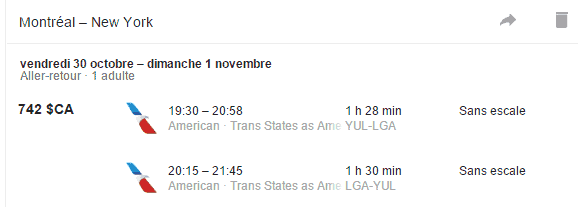 Aujourd’hui, je vais tâcher de vous apprendre à utiliser une troisième devise: vos points & miles! Et pour cela, rien de tel qu’un exemple concret comme une fin de semaine pour 2 personnes à New-York pour Halloween: départ le vendredi 30 octobre, retour le dimanche 1er novembre. C’est à dire dans moins d’une semaine!