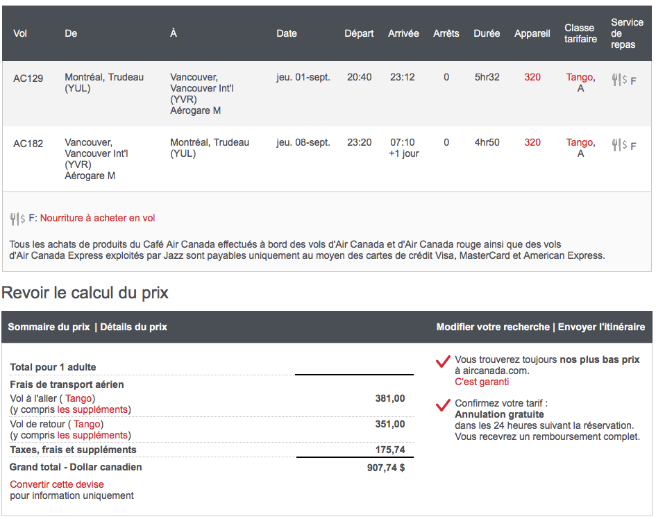 Pour trouver un vol direct, il faut s’y prendre plusieurs mois à l’avance pour réserver son billet grâce aux miles Aéroplan, surtout sur des périodes très achalandées. Sinon, vous devrez vous rabattre sur les vols ayant une correspondance à Toronto ou Calgary, ce qui rajoute en temps de trajet.