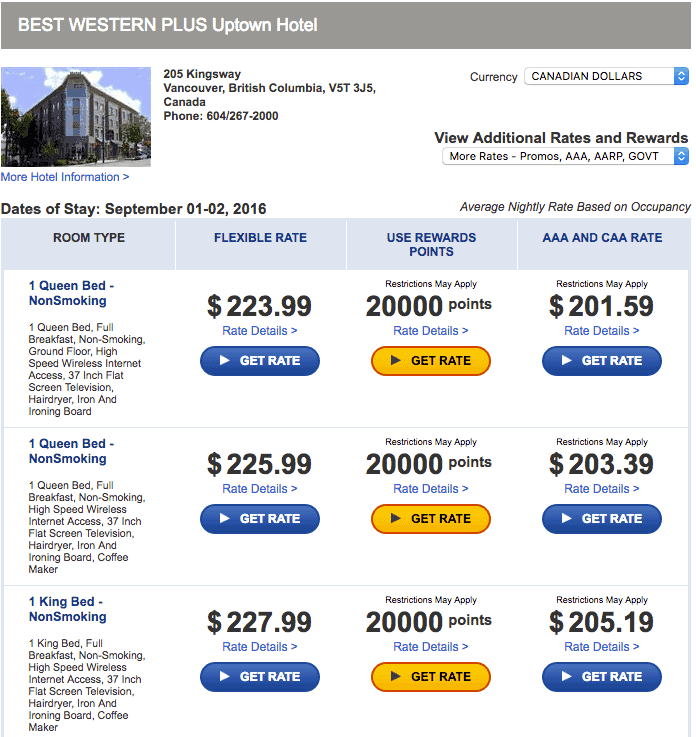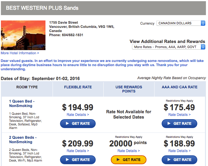 Comme vous le voyez, il est possible d’économiser grâce aux miles Aéroplan, aux points Marriott Bonvoy ou Best Western Rewards.