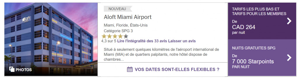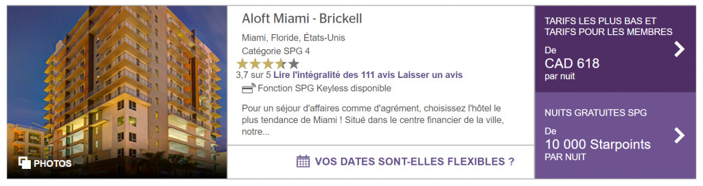 Même si l’offre n’est pas si complète on retrouve deux hôtels qui se distinguent. Le premier à Miami Beach avec la nuit à 20 000 points soit le bonus reçu lors de la souscription de la carte de crédit gratuite de MBNA.