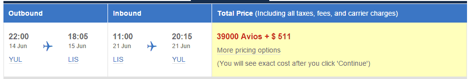 Comme vous pouvez le voir ici, le meilleur programme de récompenses de voyage pour cette situation serait de payer en argent, considérant le nombre total de points en plus des taxes et des frais. Donc, ça sera soit des points pour des crédits de relevé, soit des récompenses en argent.