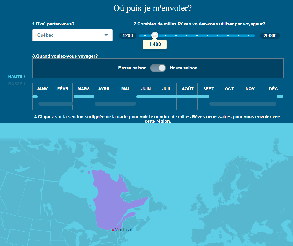 Mais si en haute-saison vous ne souhaitez visiter que le Québec, cela peut vous coûter aussi peu que 1 400 milles AIR MILES.