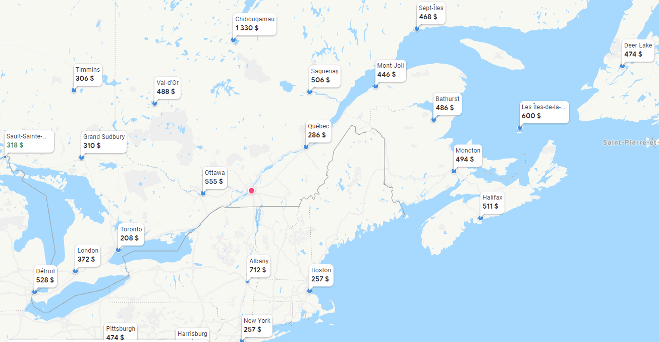 Il n’est ainsi pas rare de voir des tarifs de 600$ et + pour se rendre aux Îles de la Madeleine depuis Montréal… soit aussi cher que de nombreux vols outre-atlantique!