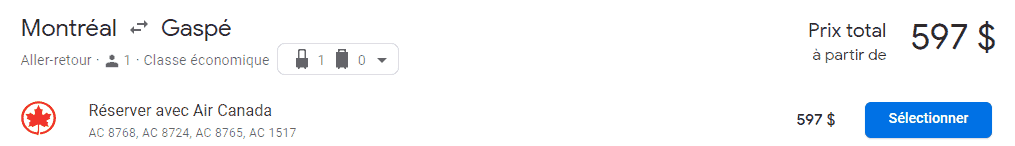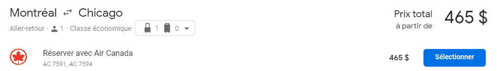 Ce même vol est le moins cher trouvé sur Google Flights.