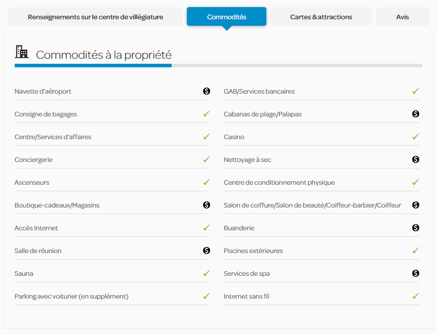 Une fois sur la page de l’établissement, vous pourrez choisir parmi toute une liste de forfaits-vacances, et trier celle-ci entre: