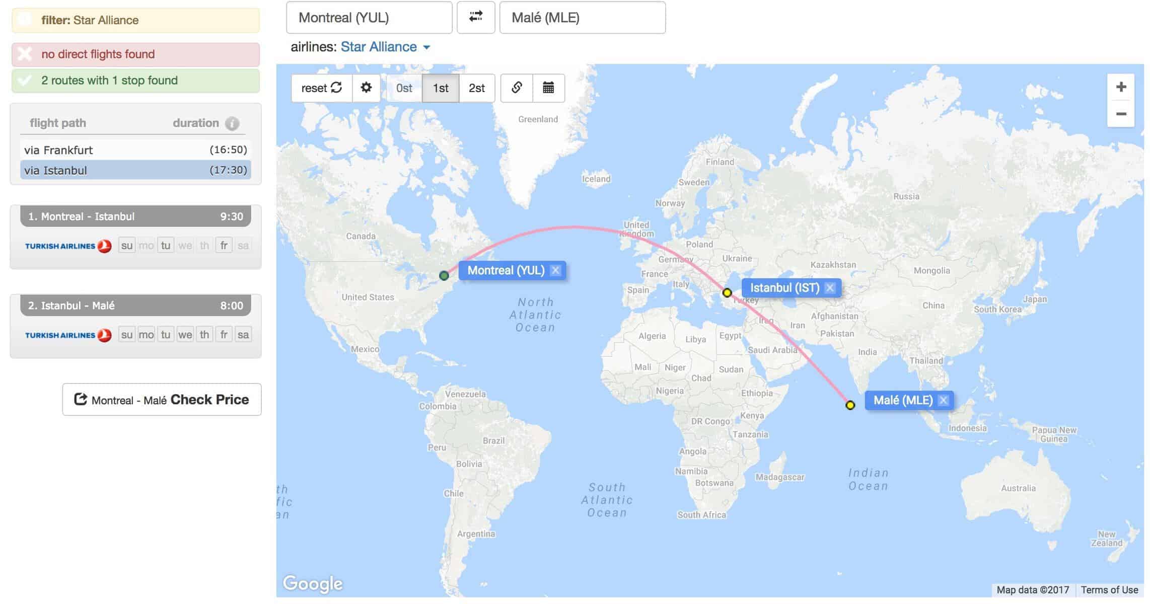 Les Maldives se situent loin… très loin par rapport au Canada. Pour s’y rendre depuis Montréal, il y a obligatoirement au moins 1 correspondance. Par exemple, il se peut que ça soit via Francfort (avec Lufthansa), Abu Dabi (avec Etihad Airways) ou Istanbul (avec Turkish Airlines).