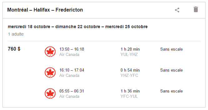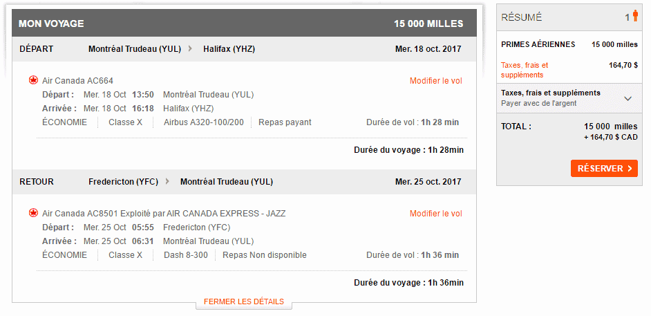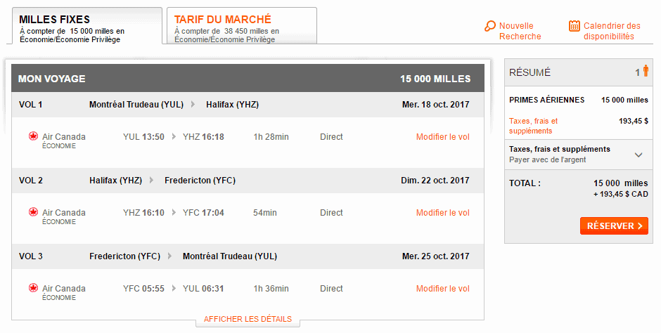André R., sur le groupe facebook de milesopedia, nous avait demandé si c’était possible de se rendre à Halifax (YHZ) et de revenir à Montréal (YUL) depuis Fredericton (YFC).