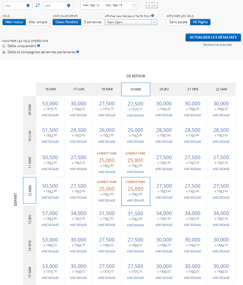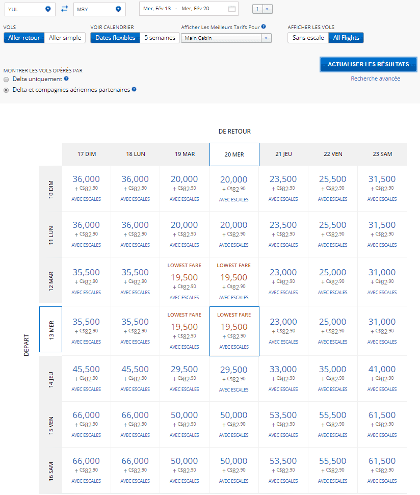 On l’oublie bien souvent, mais le programme Points-Privilèges d’American Express vous permet d’échanger vos points contre des miles du programme Delta Skymiles. Et il y a bien souvent des bonnes affaires!