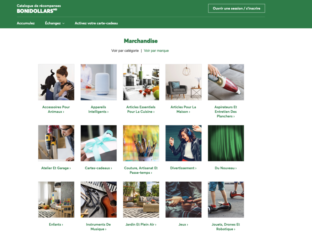 BONIDOLLARS est essentiellement un programme de remise en argent. Pour 1 BONIDOLLAR accumulé, vous obtiendrez 1 dollar à échanger sur le site bonidollars.ca dans la catégorie: