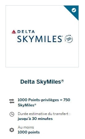 Delta Skymiles est un partenaire de transfert d’American Express Points-Privilèges.