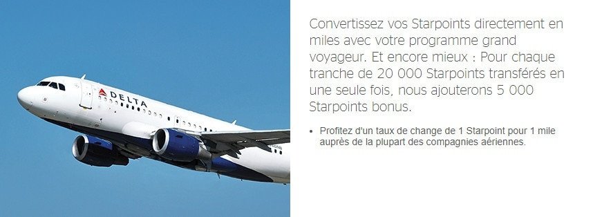 Pour chaque tranche de 20 000 starpoints transférés, vous obtiendrez 25 000 Skymiles.