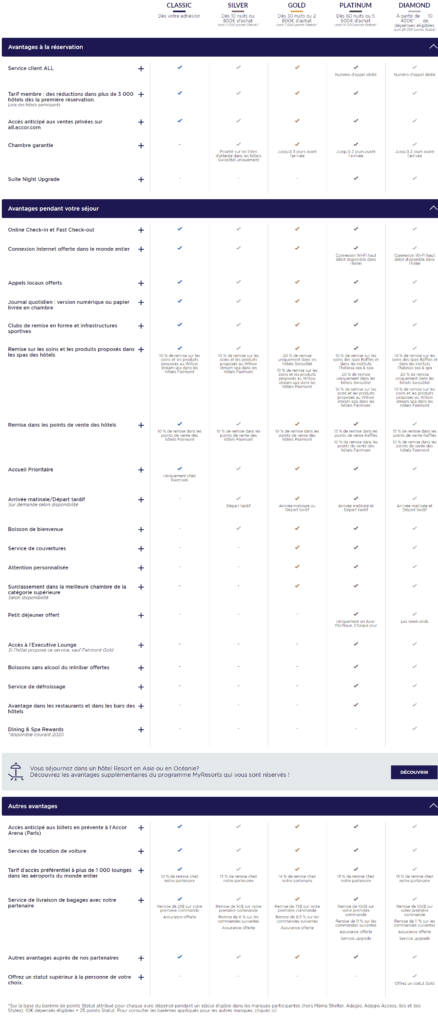 Il existe 5 niveaux de statuts Accor Live Limitless. Vous pouvez obtenir la plupart des statuts en fonction: