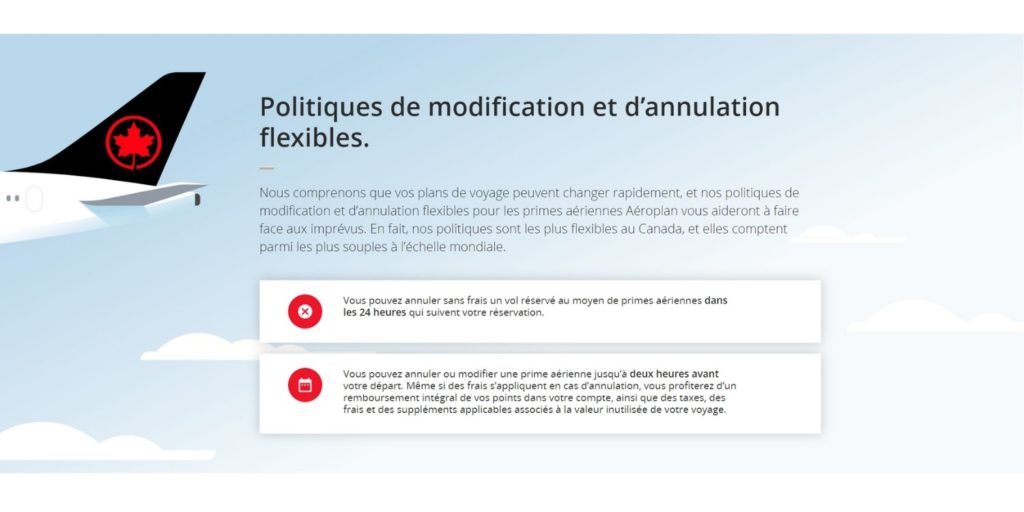 • d’annuler sans frais un vol réservé au moyen de primes aériennes dans les 24 heures qui suivent votre réservation