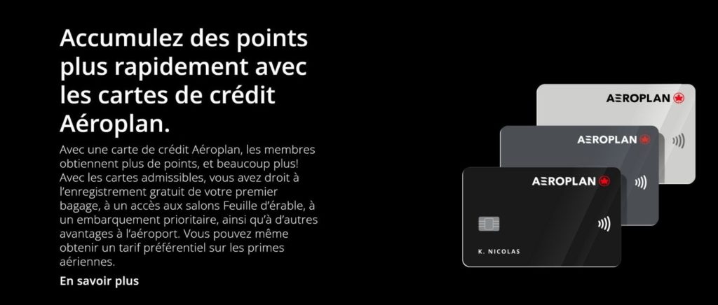 Il existe de nombreuses cartes de crédit Aéroplan émises par American Express, CIBC et TD.